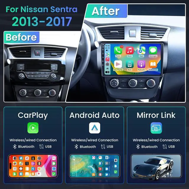 Vehicle CompatibilitySpecially designed for Nissan Sentra radio 2013 2014 2015 2016 2017. Plug and play design. Come with well connected harness, 1080P backup camera and support the steering wheel control.
