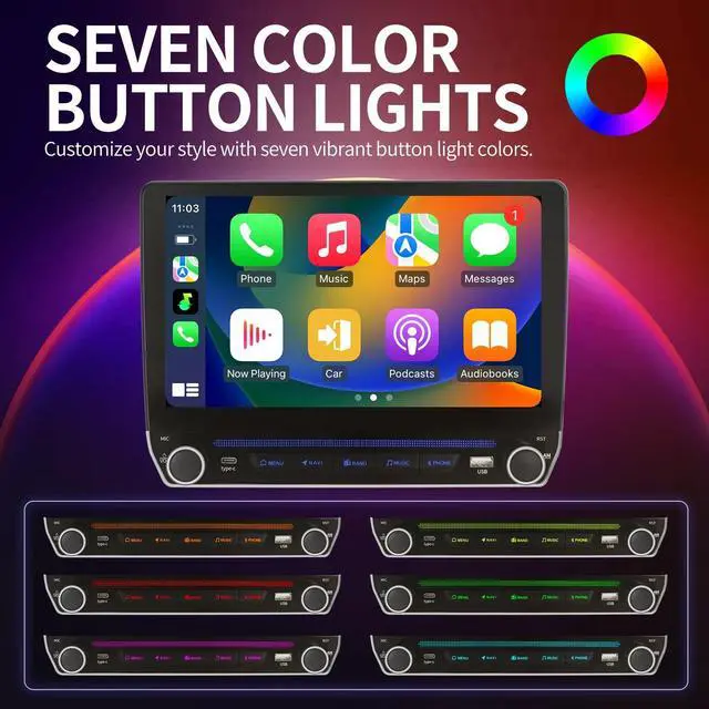 Instantly personalize your dashboard's look to match your mood or style, while the soft light effect provides clear, intuitive button visibility day or night. Easily switch between colors for a standout interior aesthetic that enhances both your vehicle's ambiance and your driving experience, seamlessly blending style with essential function. ^^ CarPlay & Android AutoUpgrade your drive with seamless smartphone integration! The car radio supports both Apple CarPlay & Android Auto via wired or wireless connection. Simply link your phone to access turn-by-turn navigation, contacts, emails, music and more using voice commands through Siri or Google Assistant.
