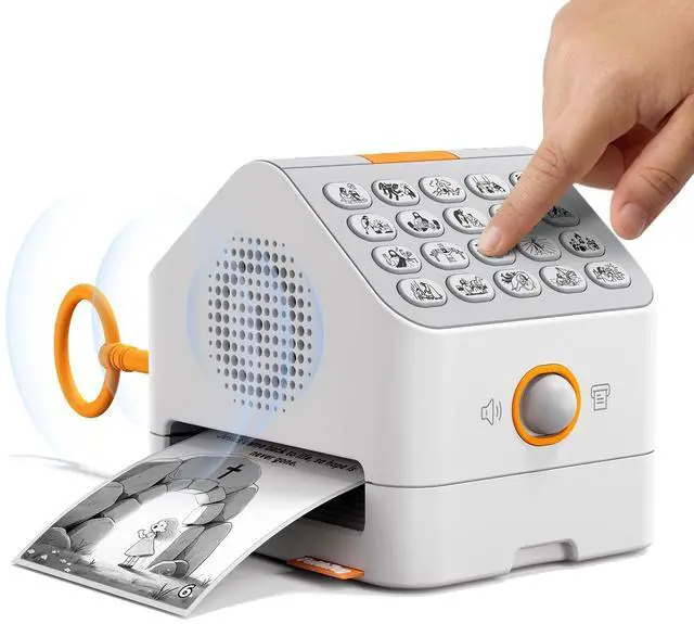 & Create: Combines a story player with an instant thermal printer. Kids can listen to stories like "Noah's Ark" or "The Creation, " then press a button to print corresponding stickers to color, paste, and collect. You can build a story wall together, turning faith into visible memories.