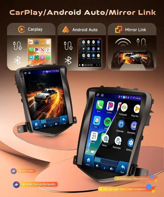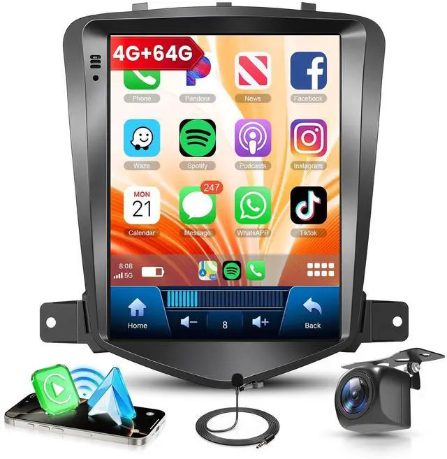 Wireless Carplay & Android Auto: For Chevy Cruze car stereo supports wired / wireless CarPlay and Android Auto connection via Bluetooth and USB. Support mirr link, Project your phone's content onto the large screen of the head unit, and you can share your favorite videos, HD pictures, etc. Easily access your phone via Voice assistant control to make calls, navigate, play music, or manage other apps.