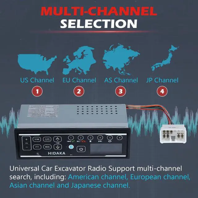Multi-Channel RadioUniversal Car Excavator Radio Support multi-channel search, including: American channel, European channel, Asian channel and Japanese channel.