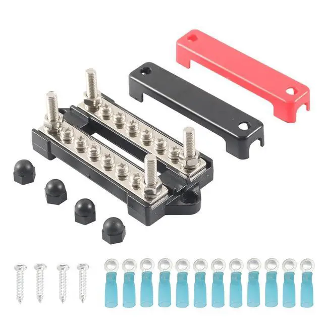 This Battery bus bar With 12 x 8# terminal studs, for voltage Max 300V AC, 48V DC, and