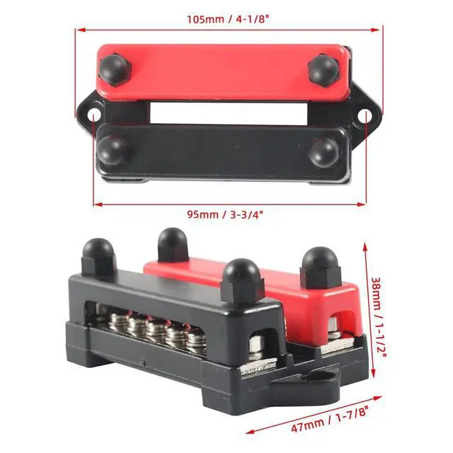 DCTerminal Studs: 4 xM6(1/4"); 12 x M4 (8#)Distance between