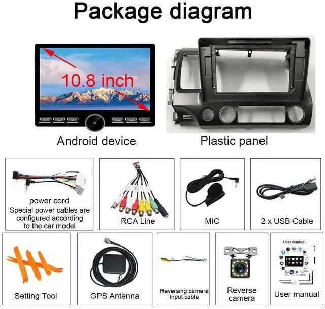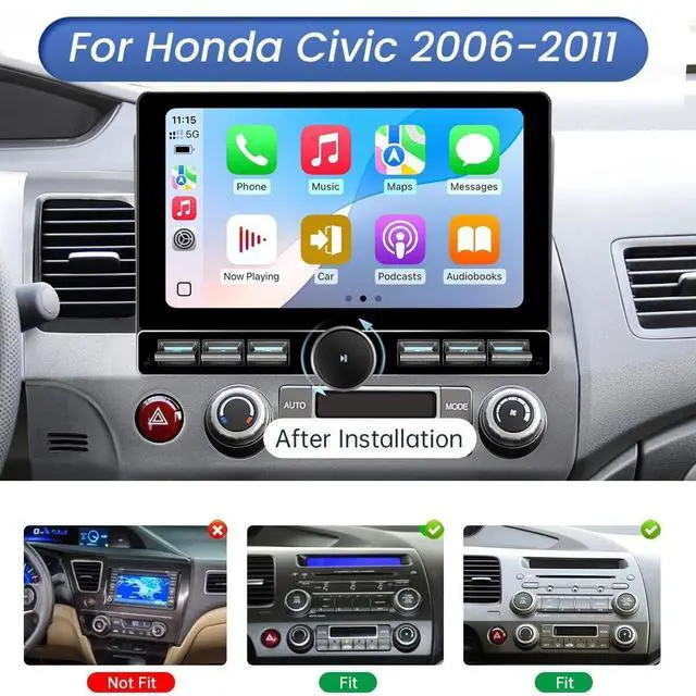 Stereo Configuration & Applicable Car Modelsis perfectly suitable for Honda Civic 2006 2007 2008 2009 2010 2011 stereo and no need to purchase additional accessories. If you have any questions, we will provide you with professional guidance in a timely manner. ^^ Android 15 Car Stereo RadioAndroid system, 10.8 inch 2.5D 1080P HD touch screen, 4GB RAM+64GB ROM eight Core CPU, offline/online GPS navigation, Wifi connection, RDS/FM radio, two USB, 36 EQ adjustable, support carplay Android auto, steering wheel control. ^^ GPS Navigation & WiFi ConnectBuilt-in Offline Map of North America.