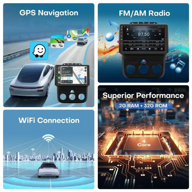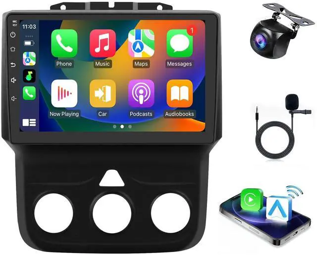 ^^ Powerful Features: Our Dodge Ram radio boasts a 9-inch IPS touchscreen powered by the Android 14 system, complemented by 2GB RAM and 32GB ROM for a seamless and responsive user experience. With its 100% standard size, there's no need for additional accessories; simply follow the installation instructions to give your car a fresh, modern look. ^^ wireless Carplay & Android AutoVia Bluetooth or USB cablefor iPhone via Bluetooth, Android phone via USB cable) to connect the phone and the radio together.