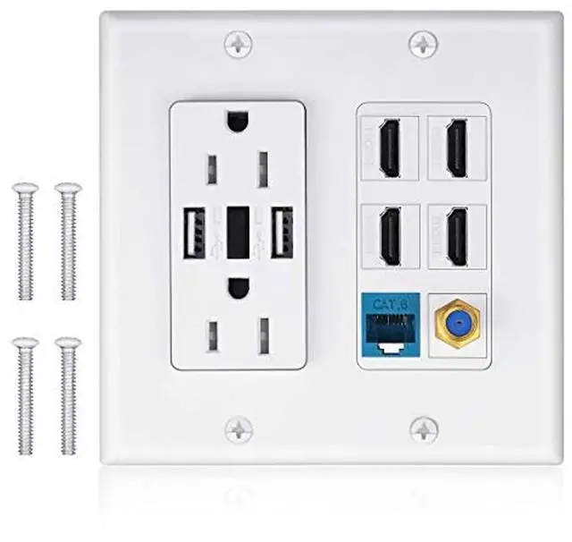 USAGE INSTRUCTIONStep: 1. Dig hole on the drywall. 2. Put the mounting bracket (not include) in the hole and tighten it with screw drivers. 3. Layout the cable from mounting bracket. 4. Separate the decora plate, usb outlet and frame. 5. Install decora plate and usb outlet firstly on the bracket. 6. Install the frame on the drywall. Faster Charging, Relax and Recharge Your BatteriesIQIAN USB Charger Wall Outlet, Dual High Speed 4.0 Amp USB Ports with Smart ChipWe Take Your Safety SeriouslyTamper Resistant Shutters - Prevent children from inserting any unwanted objects into the outlets5VA Flame Resistance Material - Reaches the Highest UL94 Flame Resistance RatingShort Circuit ProtectionOverload ProtectionUnder Voltage ProtectionOver Current ProtectionOver Voltage Protection