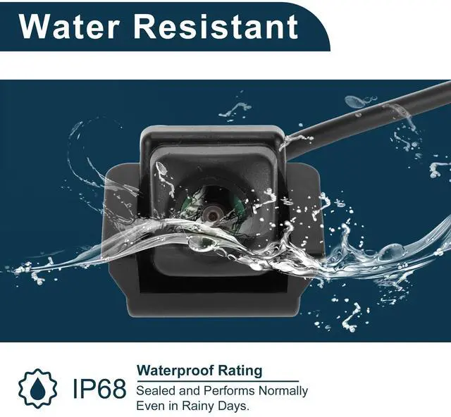 Product Characteristics: Performs normally also as night vision license plate camera, with 120-180 Degree wide view angle, even in the faint light like a dark underground garage. Our park assist backup reverse camera is sealed with a waterproof rating of IP68. So it will not be affected in harsh environments like rainy days. ^^ Easy /