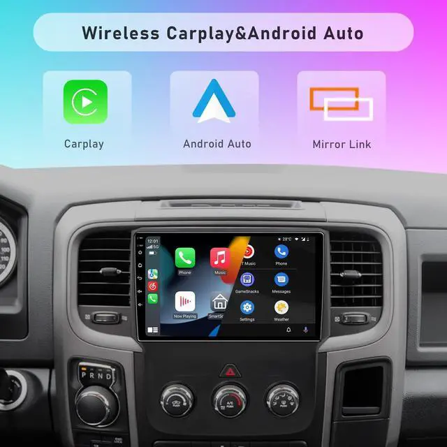 upgraded ultra HD QLED screen that gives you a higher resolution graphics visual experience. ^^ Split Screen & Steeling Wheel ControlFor Dodge Ram head unit carplay radio supports a split-screen function, you can run two apps at the same time, such as maps and video, maps and music. This android auto screen also supports Steering wheel control, you can control the stereos via