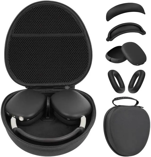 AirPods Max CaseThis 5-in-1 set of hard smart case & silicone cases is designed specifically for AirPod max headphones. The hard case features a double zipper design with a comfortable Strap for easy carrying. Silicone Case Compatible with Apple AirPods Max (2020 and 2024 release), fits the new USB-C charging port.