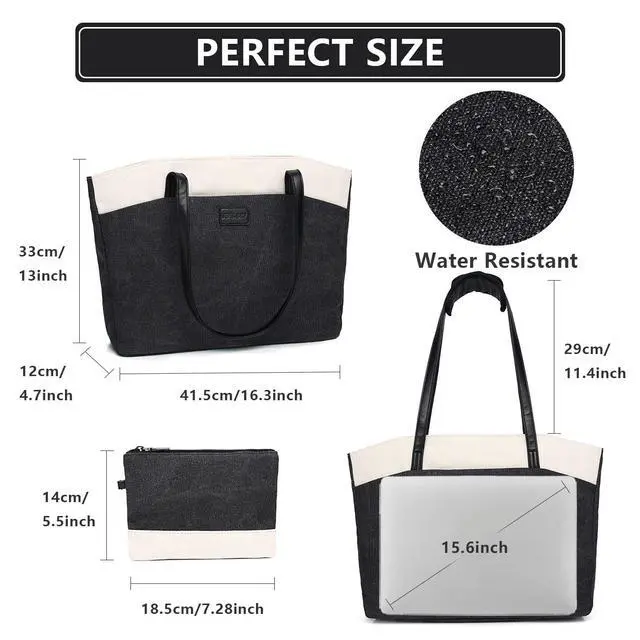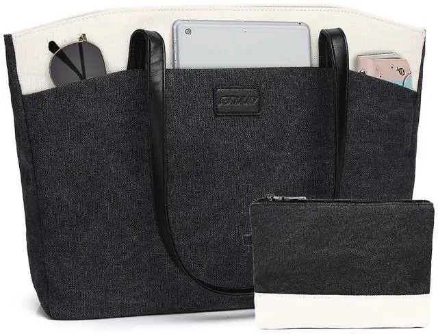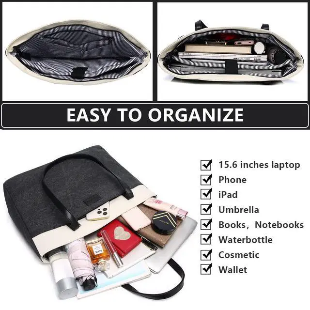 DURABLE &STYLISH RAVUO Women tote bag is made of high quality and water resistant canvas, which is long-term use and can well protect your laptop and files. The simple neutral color could fit all your outfits well. A Portable Small Pouch is included in this bag ^^ FULLY PADDED PROTECTIONThe dedicated laptop compartment and Ipad selvees are fully padded with shockproof foam, providing optimal protection for your 15.6 inch laptop and ipad. The stylish tote bag is great for using in office, college, business travel, holiday, shopping or other daily occasions.