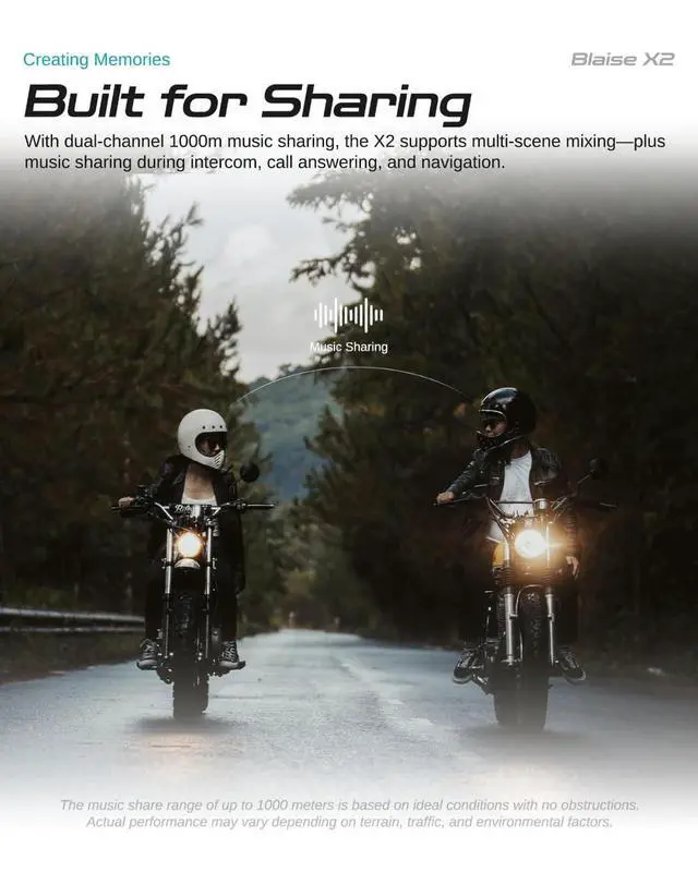 • Mixing & Lighting: Blaise X2 enables simultaneous music sharing and intercom, supporting navigation and music listening at the same time. Equipped with ENC noise reduction that works effectively at speeds 100km/h. It features 15 dynamic lighting modes, and the headphones' RGB lights sync with the rhythm of your music