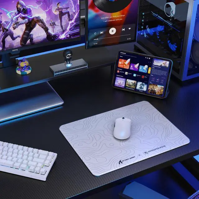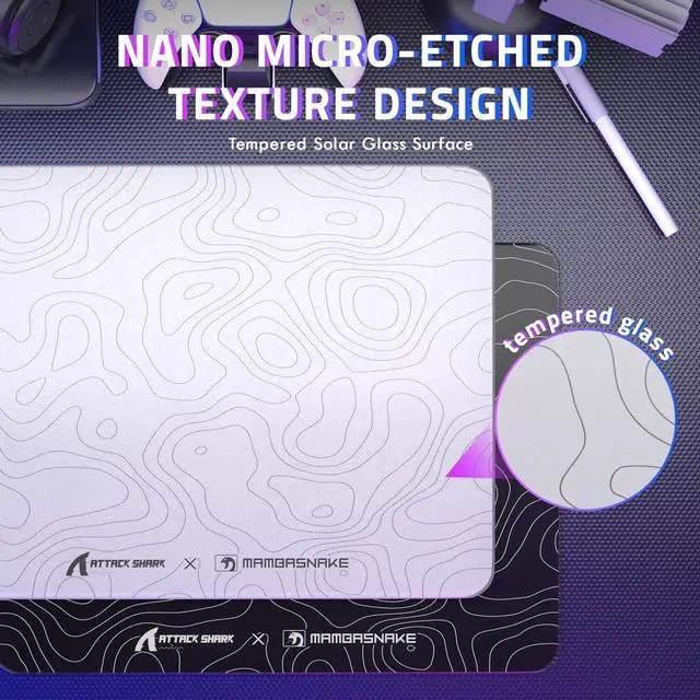 Unrivaled Precision & Ultra-Smooth GlideThe glass gaming mouse pad features a nano-micro-etched texture, delivering ultra-low friction for high-accuracy tracking. Optimized for gaming mice with PAW3395/3950 sensors, it ensures precise, fast movements while minimizing resistance. The hard mouse pad gaming design enables a seamless glide with no sudden noise, creating a quiet and immersive gaming experience.