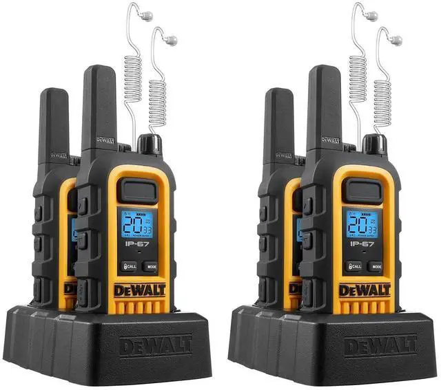 DEWALT DXFRS300 series walkie talkies deliver professional-grade communication for construction crews, warehouse teams, and facility managers who need reliability under pressure. One watt of RF output reaches up to two hundred fifty thousand square feet or twenty floors, giving large teams clear voice contact across multi-level job sites. IP sixty-seven weatherproofing provides full protection against water, dust, and drops up to two meters. Twenty-two FRS channels paired with one hundred twenty-one privacy codes keep teams on their frequency without interference from neighboring radios. Rechargeable lithium-polymer batteries support up to twelve hours of continuous use per charge, reducing long-term operating costs.