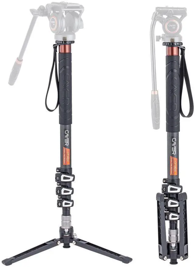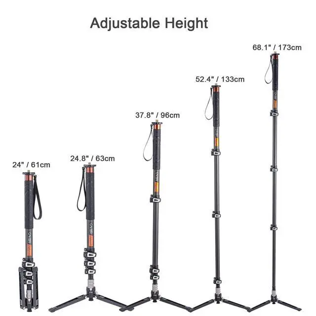 Carbon Fiber Monopod: Made with carbon fiber, the 4-section monopod with flip locks allows for fast set-up and flexibility in use, offering a working height between 24.8" and 68.1" ^^