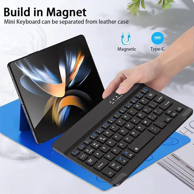 UPGRADE KEYBOARD CASE : The plain leather keyboard case have 4 angle adjustment , which can meet your needs from various angles. Mini keyboard for z fold 7 6 can be quickly charged, it can last longer for outdoor office or short trip