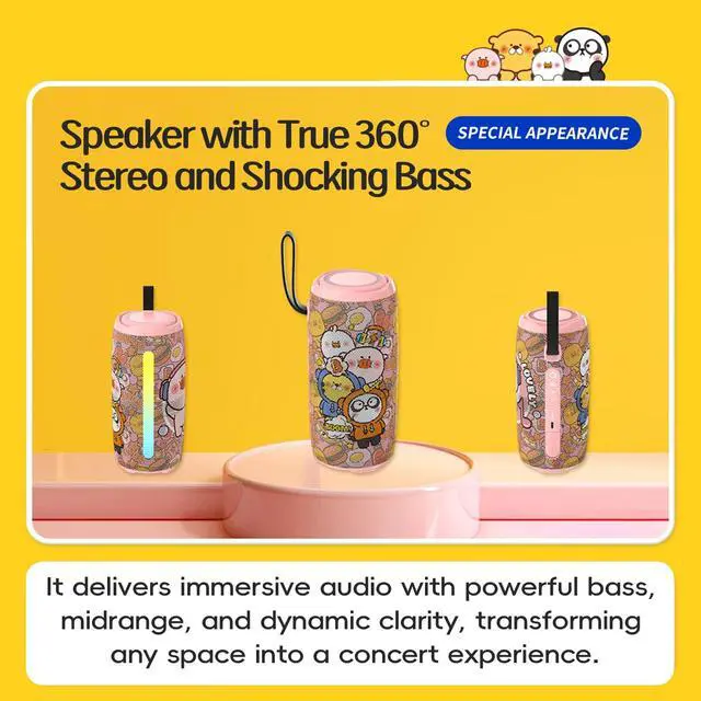 Portable Bluetooth Speaker with Lights, IPX5 Waterproof Outdoor Speaker, Stereo Sound Loud, 8H Long Playtime, for Home/Party/Outdoor/Beach, Stocking Stuffers, White Elephant Gifts Portable Bluetooth Speaker, Long lasting outdoor speakersCute cartoon speakerWaterproof Outdoor SpeakerLoud sound speakersHigh quality stereo speakersBeach Travel SpeakerCamping speakersChildren's favorite speakersLuminous speakersPink cute cartoon speaker