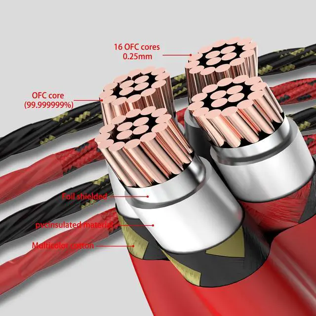 ^^ Handmade by professionals: Each cable is handmade by professionals, ensuring that every connection is precise and secure. The two-color mixed design adds a touch of style and elegance to your audio setup. ^^