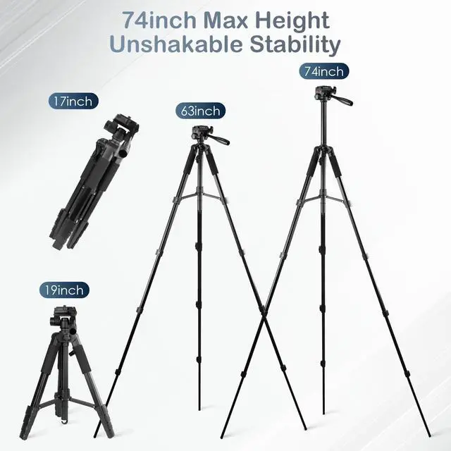 ^^ Professional-Grade Telescopic Structure: Heavy-duty 5-section aluminum legs with commercial-grade extension, adjustable from 49cm/19" to 189cm/75". 5-angle locking mechanism ensures stability on uneven terrain like mountains or stairs, providing rock-solid support for pro gear.