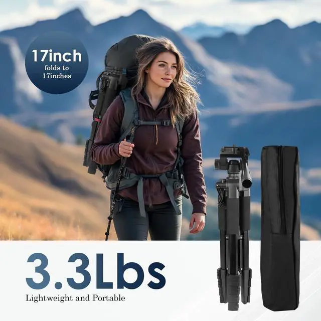 Universal Compatibility Mount: Supports DSLR cameras and smartphones (3kg/ 6.6 lb payload capacity). With3/8" standard mount for tool-free quick switching between devices. Perfectly meets the demands of both professional photography and mobile content creation.