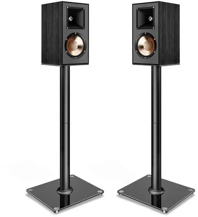 55 LBS Capacity & Large Glass Base - Designed for stability and style, each bookshelf speaker stands supports up to 55 lbs with an elegant 11.8 x 11.8 tempered glass base and sturdy metal pole support. Compatible with Klipsch, Sony, Edifier, Yamaha, Polk and most bookshelf speakers. Ideal for enhancing your listening space, this speaker stands pair offer a secure and sleek solution for premium sound setups. ^^ Clean Look, Hidden Wires - Featuring an integrated cable management system, the internal routing design of this surround sound speaker stand keeps wires neatly tucked awaysaving space and eliminating clutter.
