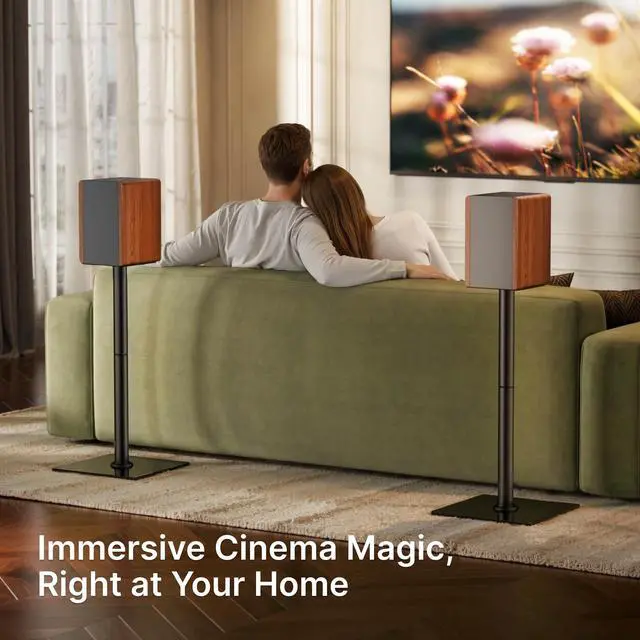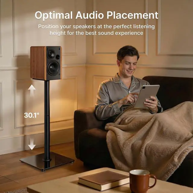 Say goodbye to messy cables and enjoy a seamless setup that blends effortlessly into your home decor for a sleek, modern look. ^^ Elevate Your Audio Experience - Standing at the ideal height of 30.1 inches, these speaker stands are engineered to deliver sound at ear levelenhancing clarity, depth, and direction. Create a truly immersive, cinematic audio experience in your home theater or living space with powerful, room-filling sound exactly where its meant to be. ^^ Versatile Base for Any Flooring - Designed with two interchangeable foot optionsrubber pads for hard floors (wood, tile, concrete) and spikes for carpeted surfacesthese stands provide enhanced stability, minimize unwanted vibrations, and protect your floors while delivering premium sound performance.