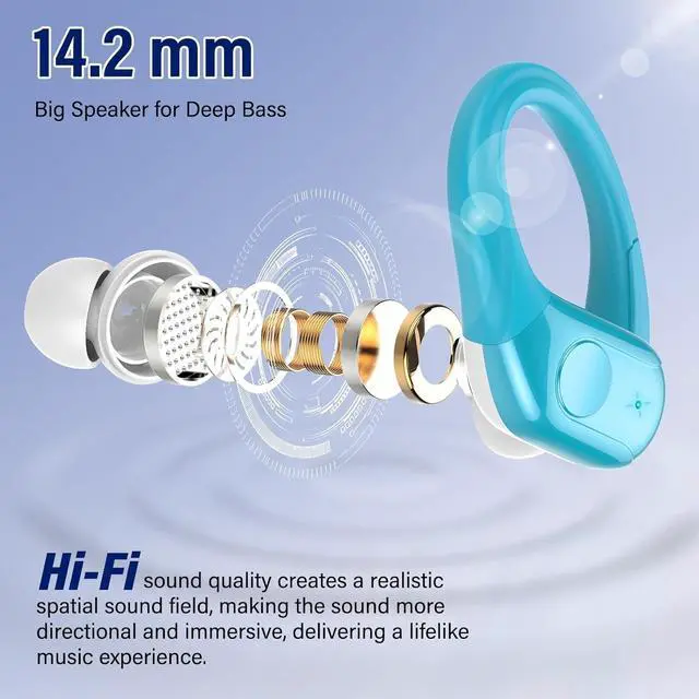 ^^ Designed for Sports: The ergonomic ear hooks, made from soft silicone, ensure a comfortable and secure fit. These wireless headphones stay in place during daily commutes, outdoor activities, and intense workouts. With an IP7 waterproof rating, theyre protected from sweat and rain, making them perfect for sports, running, and travel.