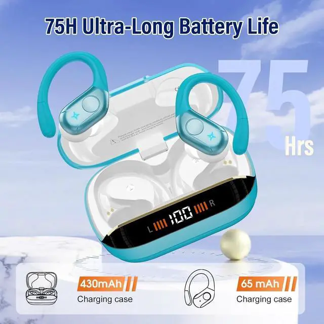 Technology Innovation: Equipped with a new Bluetooth 5.4 chip, the Bluetooth earphones offer enhanced anti-interference capabilities and optimized channel hopping mechanisms, effectively shielding against external interference. Compatible with HFP, A2DP, HSP, and AVRCP protocols, they ensure quick pairing and stable transmission for an uninterrupted audio experience. Whether at home, in the office, or at the gym, you can easily control your music and calls. ^^ 75 Hours Playtime & Dual LED Display: These running headphones offer up to 15 hours of use on a single charge. With the fast-charging Type-C port, they fully charge in just 1.5 hours. When paired with the charging case, the total playtime extends to 75 hours. The dual LED display shows the charging case's battery and earbud charging progress, keeping you informed at all times. ^^ Crystal-Clear Calls and