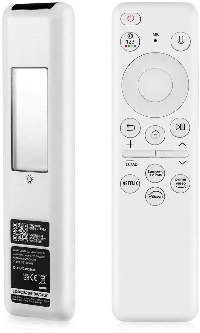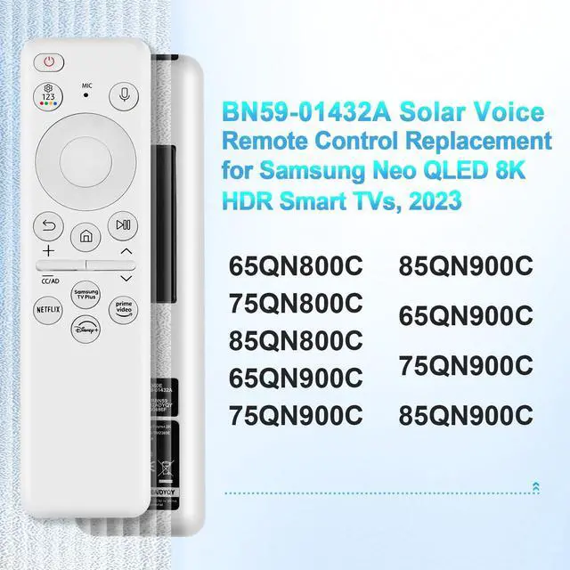 BN59-01432A Solar Voice Remote for Samsung Frame TV Remote Replacement with Solar Cell Bluetooth, Compatible with Samsung The Frame Neo QLED 8K HDR Ultra HD Smart TVs, VG-TM2360E Model, White