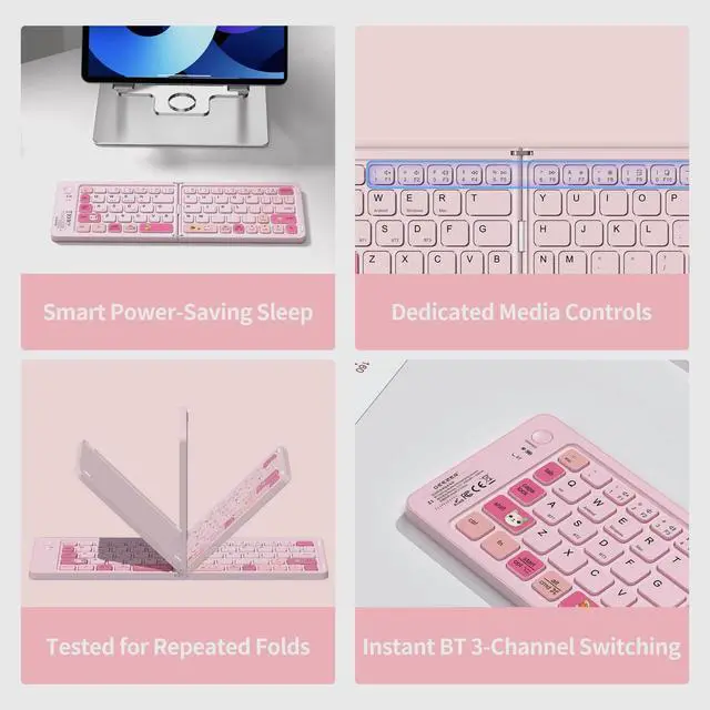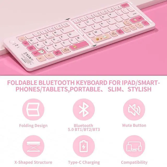 Bluetooth Foldable Keyboard Mini pc keyboard perfect for travel and business trips. Experience the convenience of a portable folding keyboard, enabling you to work effectively anywhere! No tangled cables, just a stable and reliable connection. Compact when folded, it unfolds to a standard-size keyboard with comfortable keys. Compatible with a wide range of devices, it turns mobile devices into mini workstations.