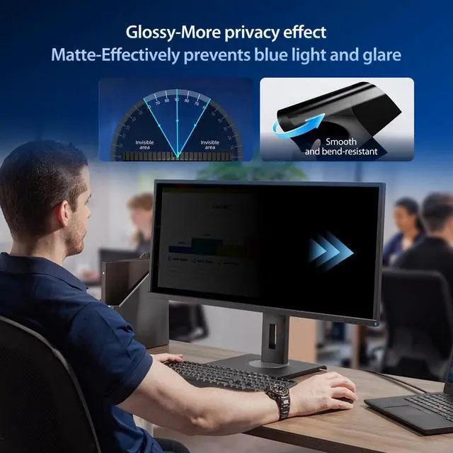 We are a factory that integrates production, processing and sales, We guarantee that all of our products are premium privacy screen protector. If anything happens, we will send you a new 22 inch monitor privacy screen at absolutely no cost. So you can buy with confidence! ^^ Brilliant Anti-glare & Function OptionsOur privacy screen protector for computer 22 inch monitor protects your eyes by blocking 95% of reflected light. Create a clear and transparent visual space and reduce eye damage by glare. And It is a reversible privacy screen filter. A matte surface effectively prevents blue light and glare, while a glossy is more privacy-resistant.