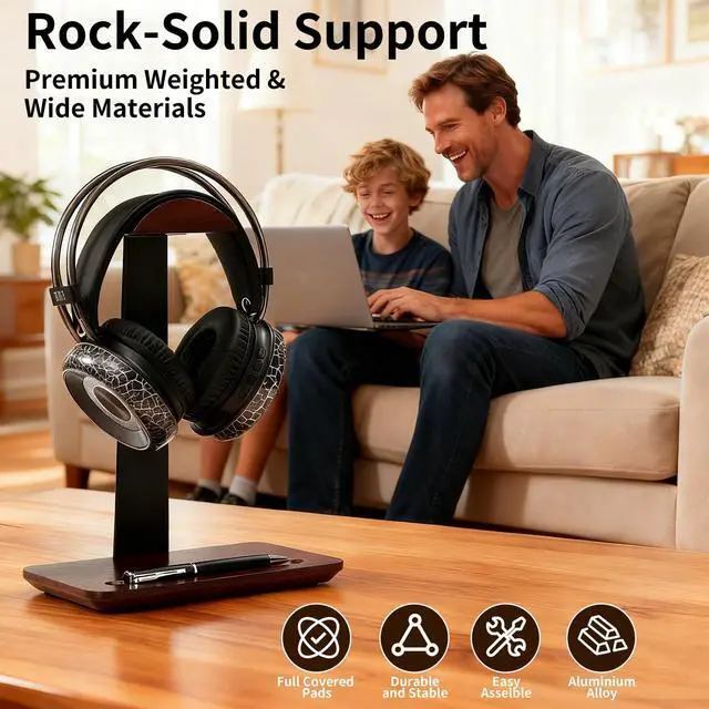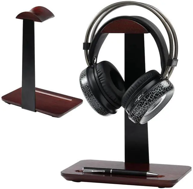Premium Walnut Headphone Stand: Crafted from high-quality solid walnut wood, this wood headphone stand offers a warm, professional aesthetic for any executive desk. The natural grain of the wooden headphone stand ensures durability and stability for long-term use in home offices or corporate settings ^^ Integrated Pen and