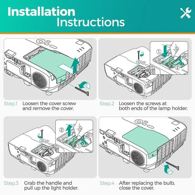 [Easy to Install]We have prepared an installation kit for you. You can use the tools we prepared for you to replace the light bulb quickly. After installation, you can enjoy the audio-visual feast .