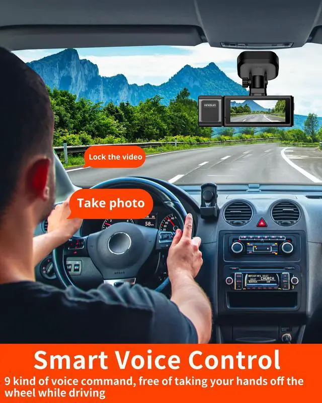 270 Rotatable Dash Camera Lens : Front dashcam is equipped with a 270 rotatable camera lens, which support turning the shooting lens towards the inside or front of the car. With 2K rear camera, you can adjust the camera lens to record front and rear or to record inside and rear. Dual lens recording mode: Front(170) + rear(150) or Inside(170) + rear(150).