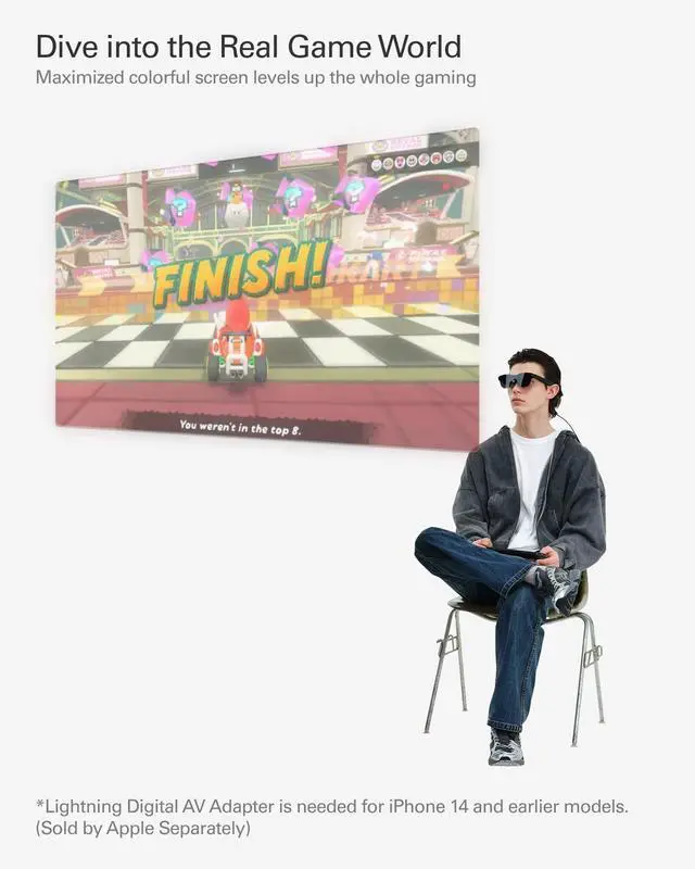 ^^ [Cinematic 201 Virtual Display] Dive into a theater-like experience with a massive 201-inch virtual screen, designed for immersive gaming, movie nights, or binge-watching shows. ^^ [Durable, High-Performance Build] Engineered with rugged materials for lasting durability, ensuring seamless performance during marathon gaming or streaming. ^^ [Instant Setup, Zero Hassle] Plug-and-play simplicityconnect instantly to unlock expanded screen and charging features without downloads or configurations.