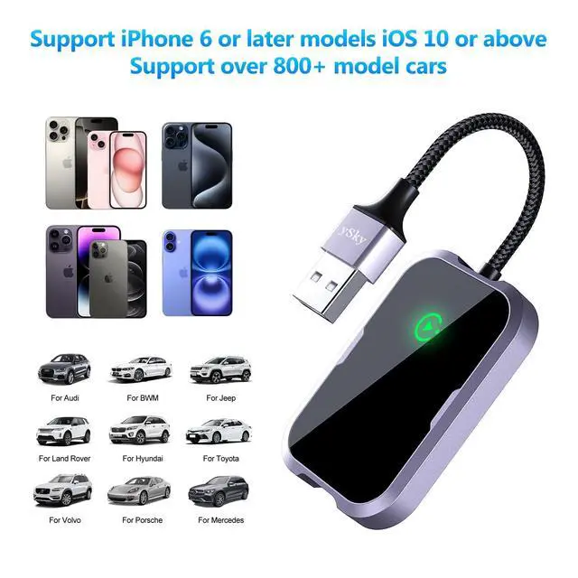 Its sleek and modern aesthetic complements your dashboard without being obtrusive. ^^ Wide Compatibility with more than 800 car modelsworks with any vehicle that has a factory-installed wired CarPlay, our CarPlay adapter makes upgrading to wireless functionality easy and efficient, without the need for expensive modifications or replacements for your car. To check compatibility, you can connect your phone to your car using a USB data cable. if Carplay is supported, the Carplay interface will appear on your car screen(If your car DOES NOT HAVE a built-in CarPlay system, please DO NOT purchase) ^^ Supported thoese