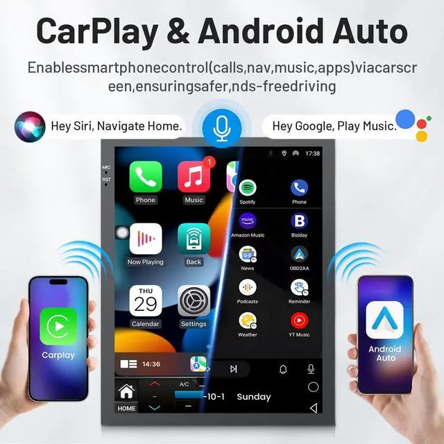 ^^ & Easily connect your iPhone or Android device wirelessly to access maps, calls, music, and more directly on the head unit. Keep your hands on the wheel while enjoying full smartphone integration. ^^ & Dual-band WiFi ( 2.4G +5G) provides a stable, high-speed internet connection. Pre-installed GPS supports both online and offline navigation, with OTA firmware updates ensuring your system stays current. ^^ / - Integrated 48-band DSP and RDS technology deliver rich, customizable sound with precise control. Enjoy enhanced radio stability, station names, and dynamic sound tuning for a premium driving soundtrack.