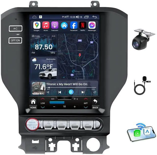 Specifically engineered to fit Ford Mustang models from 2015 to 2025, this head unit maintains OEM aesthetics with a plug-and-play designno extra wiring or dashboard modifications required. ^^ 9.7" Features a 9.7 -inch Tesla-style vertical screen with 1024768 resolution for clear visuals and intuitive touch controls. Enjoy a modern infotainment experience that enhances your Mustang's interior. ^^ 4+64 Equipped with a powerful 8-core processor, 4GB RAM, and 64GB ROM, this system delivers fast operation and ample space for apps, maps, music, and videos. Perfect for multitasking and high-performance use.