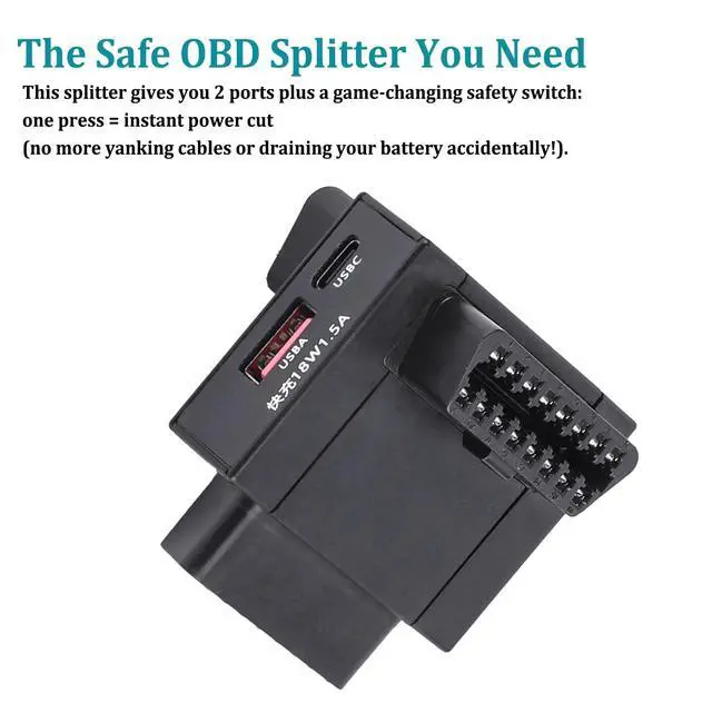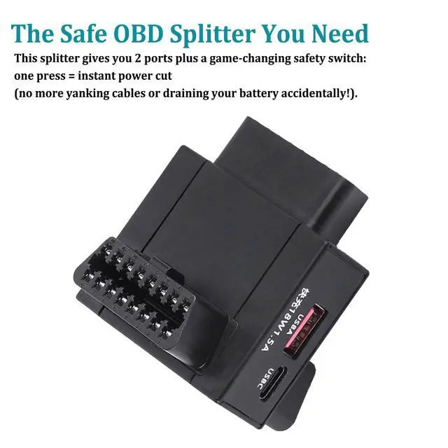 The Safe OBD Splitter You Need: This splitter gives you 2 ports plus a game-changing safety switch: one press = instant power cut (no more yanking cables or draining your battery accidentally! ).