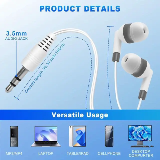 Enhance classroom, office, or group learning with this 120-pack of wired earbuds bulk. Made from durable PVC, they provide clear audio and reliable performance for daily use. Perfect for classrooms, online learning, corporate training, silent study sessions, or events. Lightweight and easy to distribute, these bulk earbuds ensure each participant can focus and enjoy their audio experience.