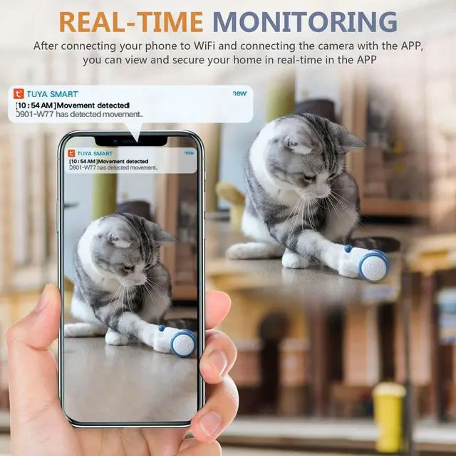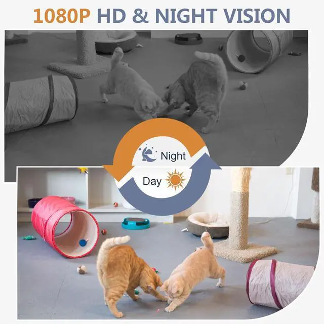 1920x1080P Full HD resolution and image quality can capture more detailed information, effectively improving the accuracy and efficiency of monitoring ^^ After connecting WiFi and the camera through the free APP, the monitoring screen can be synchronously transmitted to the APP, which is convenient for you to monitor anytime and anywhere (no need to insert an SD card to connect) ^^ The motion detection function can intelligently identify moving objects in the monitoring screen. Once it detects movement, it will send a notification to your phone to remind you ^^ 6 high-quality infrared lights allow the camera to work normally in dim or no-light environments, effectively extending the camera's usage time ^^ After inserting an SD card (not included), you can loop record and store videos for free, and automatically overwrite the earliest file when the memory card is full, thereby ensuring the continuity of monitoring ^^ This nanny camera supports working while charging.