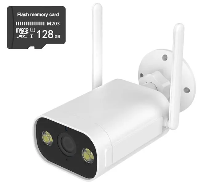 Power connector: DC-5V 1A, power extension cord length 7.5 feet. Package provides power adapter and 128G SD card (already inserted into the device body) ^^ [Camera