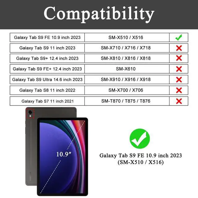 Designed for Galaxy Tab S10 Lite/S10 FE/S9 FE 10.9" -- Exclusively designed for New Samsung Galaxy Tab S10 Lite 10.9" (Model SM-X400/X406B, 2025 Release); Samsung Galaxy Tab S10 FE 10.9" (Model SM-X520/X526B/X528U, 2025 Release); Samsung Galaxy Tab S9 FE 10.9" (SM-X510/X516B/X518U, 2023 Released) ^^ Designed for Full Protection -- Soft TPU back shell protect your new Galaxy Tab S10 Lite/S10 FE/S9 FE 10.9 Inch from shocks, drops and impacts. Magnet secure the case closure ^^ Designed for Folio Stand -- With dual standing positions for enjoying the most comfortable viewing angles ^^ Designed for Snug Fit -- With precious cutouts and full access to all features (Cameras, Speakers, Ports and Buttons) ^^ Feel Confident for your purchase-All products purchased from Soke Direct come with a hassle-free support service for 12 months.