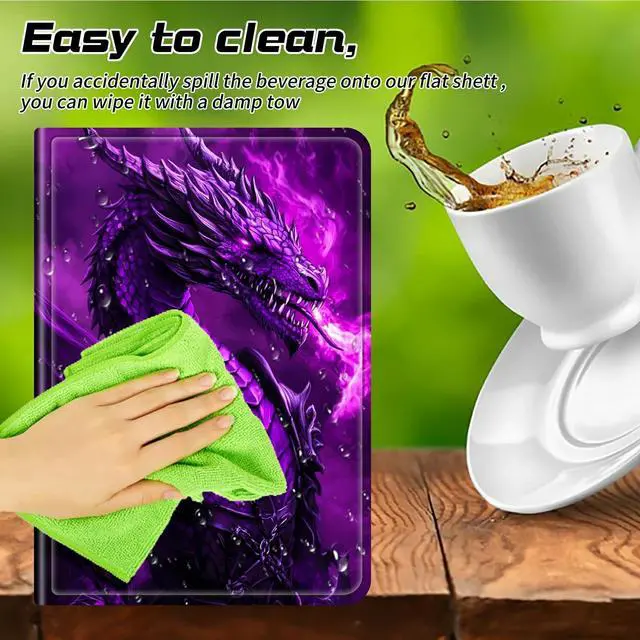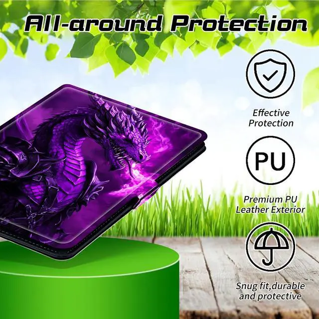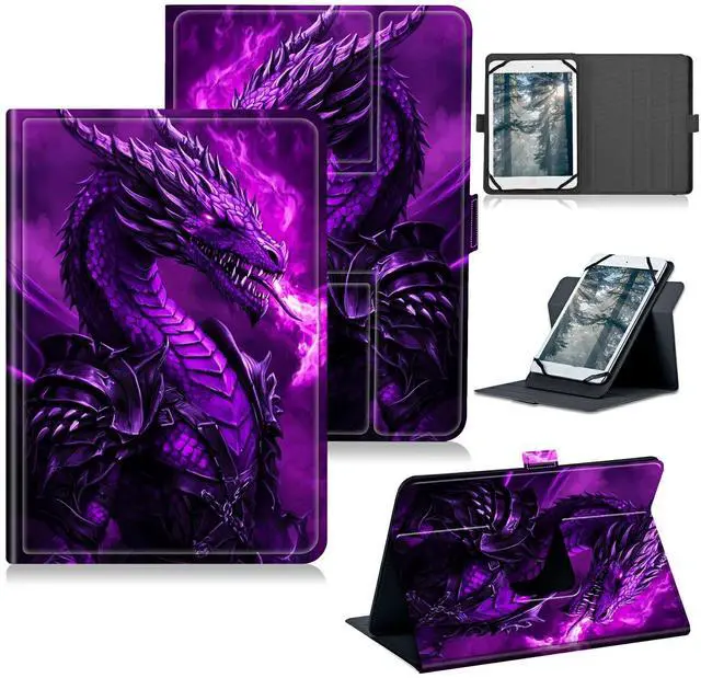 RWUTYTIUL for Walmart Onn 11 Inch Pro 2024 Model 100146660 Universal Case, 360 Degree Rotating Kickstand Protective Stand Case with Multiple Viewing PU Leather Shell Case, Purple Flaming Dragon