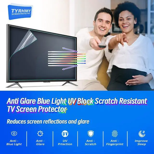 ANTI-GLARE TECHNOLOGY: Effectively reduces reflections and glare from ambient lighting, making TV viewing more comfortable in bright environments, the anti-glare matte surface helps minimize distracting reflections without compromising the visual quality of the content ^^ Important Outdoor Usage GuidelinesWhen used outdoors, place your TV under a roof or in a shaded area. Direct sunlight on the screen will affect the anti-glare function, and the protector cannot prevent issues caused by prolonged sunlight exposure. ^^ Effective Blue Light FilteringBuilt-in blue light filter blocks harmful blue light 380nm-495nm to reduce eye strain and support better sleep after long viewing sessions.
