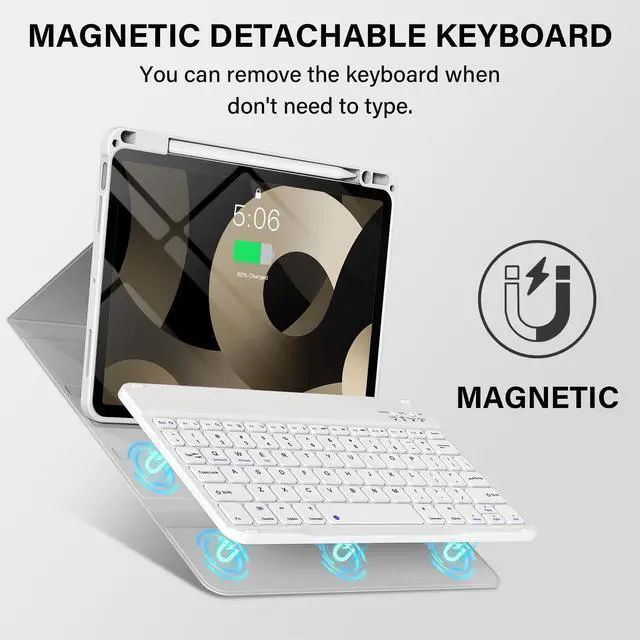 Wireless Keyboard: The magnetic bluetooth keyboard and case are separated, magnetically attached, the keyboard can be removed from the case. The keyboard can be attached to the case magnetically, if not needed, it can be removed. You can take keyboard case to anywhere anytime after 2-3 hours full charged with built-in long life rechargeable Lithium-ion battery ^^