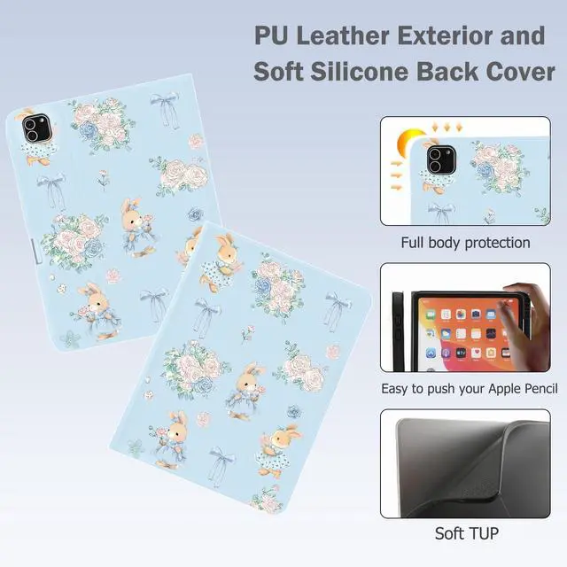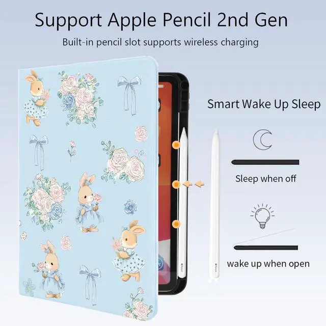 Please Note: It doesn't compatible with any other tablet models ^^ Well made with premium leather and rubber external cover and soft silicone back cover, offers full body protection from drops and scratches ^^ Built-in Apple Pencil holder, grab your Apple Pencil effortlessly whenever you want, keep the apple pencil as safe as your iPad all the time ^^ The Case for iPad has three bracket angles for comfortable watching movie or typing. Available in a variety of exquisite and unique pattern ^^ Built-in magnetic strip provides auto sleep / wake function. Precise cutout and design allow easy access to all ports, sensors, speakers, cameras