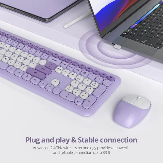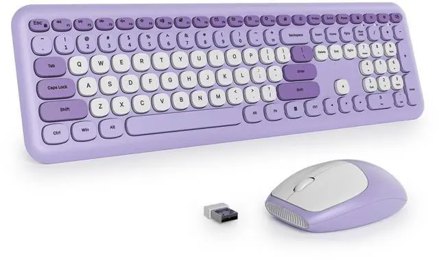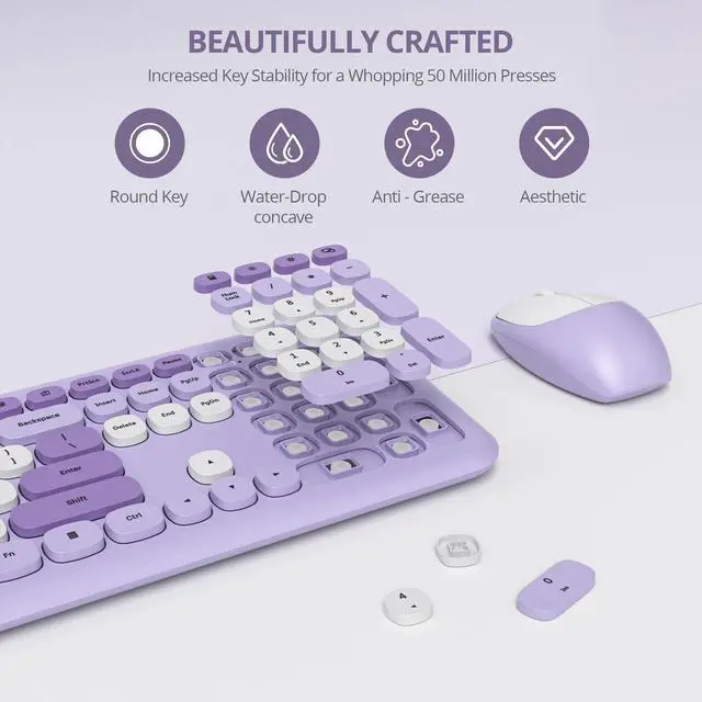 Multi-functional Hotkeys: Why not make working and learning easier? With 15 hotkeys and a numeric keypad, this retro keyboard and mouse wireless set is fully prepared for better study and work. Trust me, you'll love this creamy keyboard wireless experience ^^ Universal CompatibilityThis bubble wireless keyboard and mouse combo is compatible with windows XP/Vista/7/8/10/X, Mac and other operating systems. It is suitable for desktop, Chrome-book, PC, laptop, computer, etc.