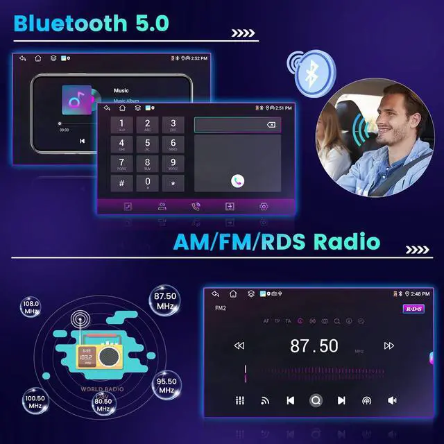 SIM card: Setting--More--About Device--SIM Card Switch--External SIM Card--Power Off and Restart the Device ^^ Easy ConnectionThe carplay of this Hikity car radio is NOT compatible with the latest iOS 18.2 version of cell phones at the moment. After the phone system version is updated, you need to restart the phone, turn on the Carplay switch in the phone system settings, and then connect Carplay according to the instructions ^^ Android 13 Car Radio With powerful Android 13 system, 4G RAM ensures that the android 13 car stereo runs smoothly. 64G ROM allows you to download and install multiple apps that you like through the Store, like Youtube, Soptify, Pandora, etc., you can enjoy a smooth and responsive user experience. Android Radio 9 inch IPS display provides you true-to-life color, With its responsive touch-button design, you can enjoy a precise fingertip control experience ^^ Wireless Carplay, Android Auto & Voice Control You can connect the touch screen radio with your smart phone via Bluetooth or Original USB data cable to enjoy seamless connectivity, you can effortlessly reach to the smartphone apps and features effortlessly. Support voice control, driver can keep his hands free and focus on the road by saying 'Hey Siri' or 'OK Google' to reach the function he wants ^^ Wireless Apple Carplay, Android Auto & Voice Control You can connect the touch screen radio with your smart phone via Bluetooth or Original USB data cable to enjoy seamless connectivity, you can effortlessly reach to the smartphone apps and features effortlessly.