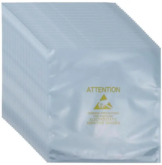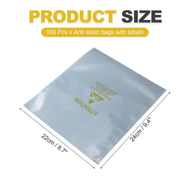 gray; packing list: 100 Pcs x Anti static bags with labels. ^^ The anti-static bag is made of electroplated aluminum, crafted with multi-layer metallized film that has strong ESD/EMI interference. The transparent anti-static bag is equipped with a yellow anti-static label, which allows you to see and distinguish the electronic equipment clearly in the bag. The ESD shielding bags are reusable, waterproof, tear-resistant, and great for protecting electronic devices.