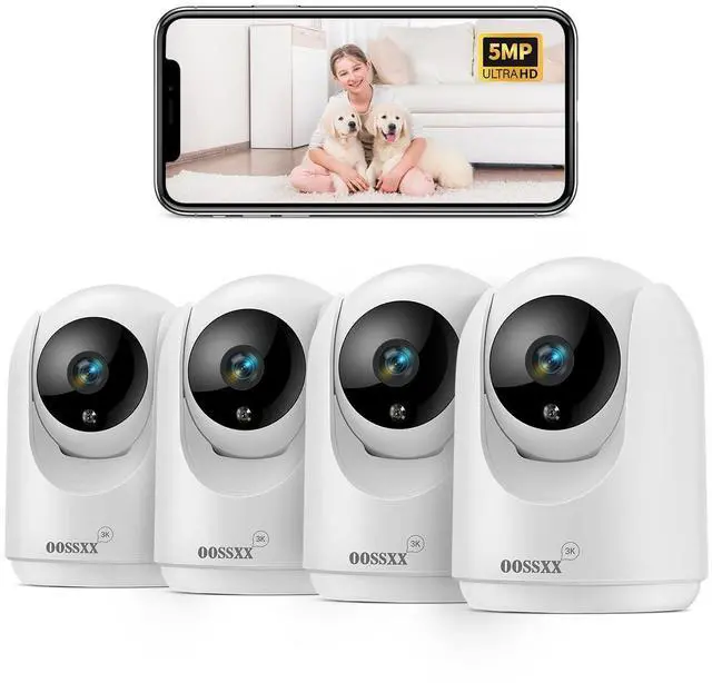 {2-Way Audio} The indoor home cameras allow you to communicate with family or visitors via your mobile phone. You can set the device to emit a loud alarm when motion is detected, thanks to the built-in advanced microphone and speaker, which also enable you to scare away uninvited guests. ^^ {5G/ 2.4G Dual-band WiFi} Featuring dual-band WiFi, the wireless security camera provides more stable connectivity, so you are able to view live feed in a smoother manner. ^^ { 2.7K 1944P High-definition} The wireless camera indoor supports cloud storage and local TF card video storage to ensure safe storage of video data.